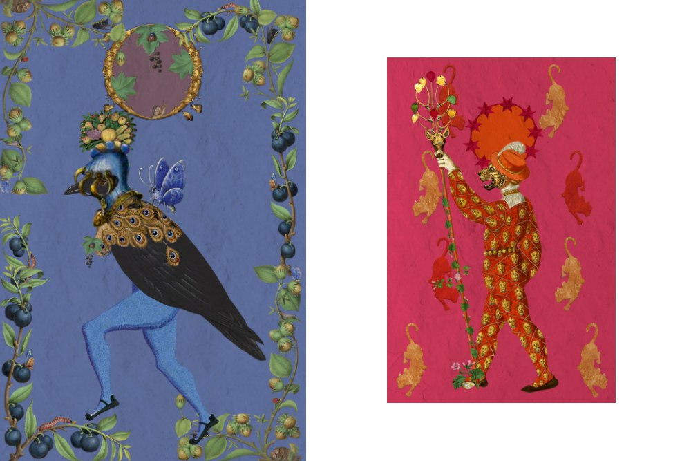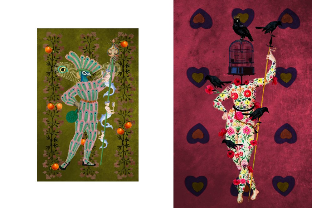 Zaina’s collage art focuses on assembling many worlds into one, usually led by a protagonist; she focuses on mixing world cultures, architecture, motifs, archaeology, arts and nature into a single portrait.